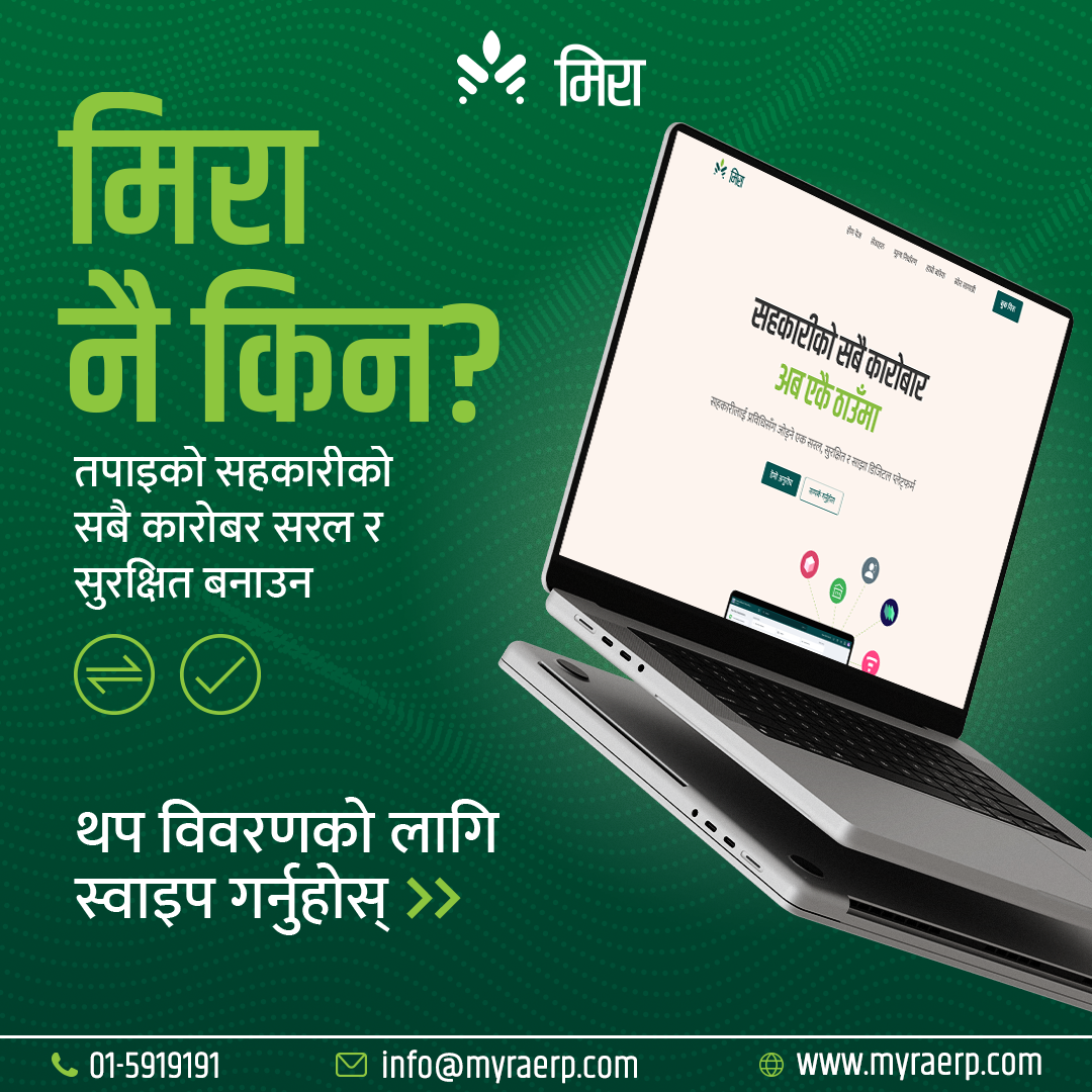 Developed by Neosys Technology in collaboration with NEFSCUN and Rara Digital Labs, Myra ERP is a Software-as-a-Service (SaaS) solution designed to digitize Nepal’s cooperative sector. The platform offers a comprehensive suite of tools, including core banking systems, accounting modules, member and share management, inventory oversight, and mobile banking capabilities.